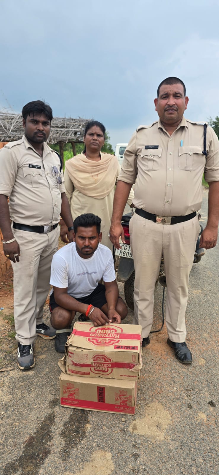 आज उड़न दस्ता की टीम दिनांक 5.9.2025 को बलरामपुर जिले के थाना त्रिकुंडा ग्राम चेरा क्षेत्र में गस्त कर रही थी तभी चेरा मेंन रोड पर एक बाइक सवार को सामने से आते हडबडाते देख उसका पीछा कर उसे रोका गया,, पूछने पर उसने अपना नाम राजकुमार पटवा निवासी सुलसुली बताया.. उससे पूछने पर कि तुम्हारी बाइक में बोरी में क्या बंधा हुआ है तो उसने स्वयं बताया कि वह उत्तर प्रदेश के परसापाली से एक पेटी मैकडॉवेल नंबर वन तथा एक पेटी हैवर्ड 5000 बियर खरीद कर ला रहा है, गवाहों के समक्ष तलाशी लेने पर उसके बताए अनुसार उत्तर प्रदेश राज्य की कुल 20.64 लीटर विदेशी मदिरा व्हिस्की एवं बियर जप्त किया गया आरोपी को छत्तीसगढ़ आबकारी अधिनियम की धारा 34(2) 59 (क) 36 के तहत गिरफ्तार कर आज माननीय न्यायालय रामानुजगंज में रिमांड हेतु प्रस्तुत किया गया जहां से जेल दाखिल का आदेश प्राप्त हुआ। आज ही दिनांक को चूना पाथर थाना सनवाल निवासी लारकेश्वर यादव के कब्जे से 18 नाग 8pm टेट्रा पैक 3.24 लीटर बरामद कर आबकारी अधिनियम की धारा 34(1)36 के तहत कार्रवाई की गई।।