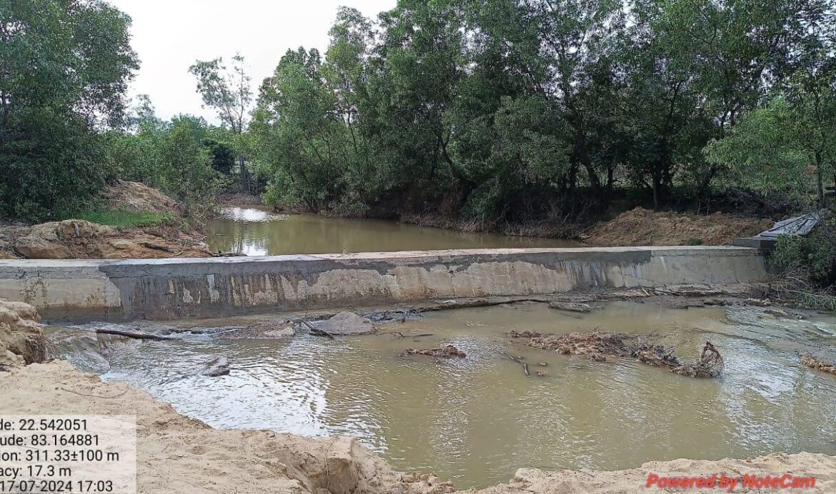 यह मामला रायगढ़ जिले के धरमजयगढ़ वन मंडल क्षेत्र अंतर्गत आने वाले बोरो रेंज का है। जहां जबगा एरिया में स्थित एक नाले पर वन विभाग द्वारा चेक डेम बनाया गया है। अघोषित विभागीय परंपरा अनुसार इस काम को अपरोक्ष रूप से किसी स्थानीय ठेकेदार के माध्यम से कराया गया है। इस निर्माण कार्य के दोनों स्थितियों की तस्वीरों और कथित मानसिक रूप से विक्षिप्त किसान पर डेम को क्षति पहुंचाने का अस्वीकार्य दोषारोपण इस निर्माण कार्य की गुणवत्ता के मामले को पूरी तरह से संदिग्ध बनाता है। यदि इस कहानी को सच मान भी लिया जाए तो यह तय करना शायद असंभव होगा कि डेम की स्टेबिलिटी और स्ट्रेंथ अधिक है या डेम को नुकसान पहुंचाने वाले कथित किसान की।