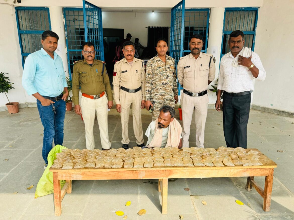 (1) ग्राम छोटे हरदी पुसौर में आरोपी पालेश्वर बाघ से 120 पाउच ओड़िशा ब्रांड का मयूर छाप महुआ शराब ।