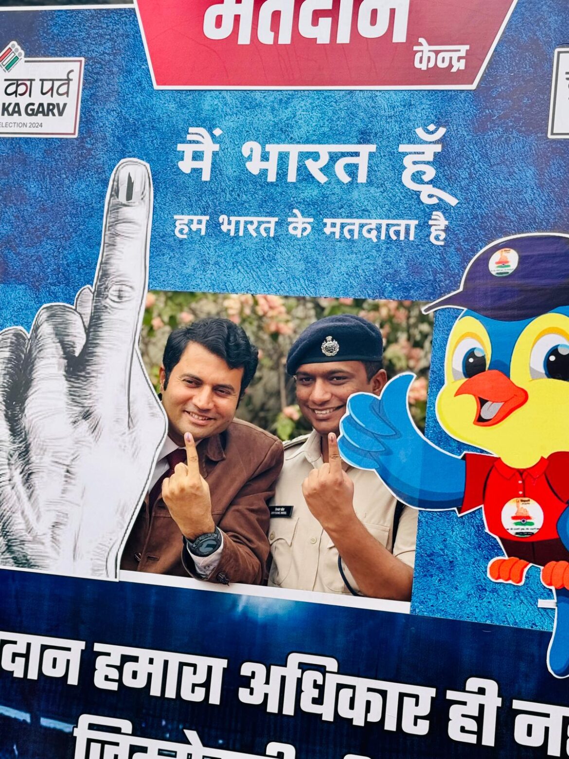 रायगढ़ । 18वीं लोकसभा चुनाव के तृतीय चरण की मतदान प्रक्रिया जारी है। रायगढ़ लोकसभा के लिये आज सुबह वोटिंग निर्धरित समय पर प्रारंभ हुआ । जिले के कलेक्टर कार्तिकेया गोयल एवं पुलिस अधीक्षक दिव्यांग कुमार पटेल ने सुबह बालमंदिर मतदान केन्द्र में सहज आम वोटर्स की तरह लाइन में खड़े होकर अपनी बारी का इंतजार कर मतदान किये जिसके बाद उन्होंने सेल्फी पाइंट में अमिट स्याही लगी तस्वीरें सोशल मीडिया में शेयर कर लोगों को घरों से निकलकर मतदान करने का संदेश दिया।