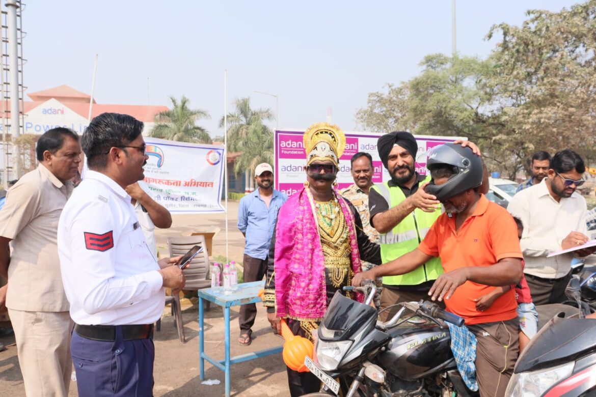 जिले में पुलिस अधीक्षक दिव्यांग कुमार पटेल के निर्देशन में यातायात पुलिस लगातार वाहन चेकिंग और चालानी कार्रवाई के साथ ही सड़क सुरक्षा अभियान चला रही है। जिले के उद्योग, एनजीओ और समाजसेवी यातायात पुलिस के इस अभियान में सहयोग कर रहे हैं। इसी कड़ी में अडानी पावर लिमिटेड के साथ साझा जागरूकता कार्यक्रम आयोजित किया गया जिसमें विशेष रूप से ‘यमराज’ के रूप में सजीव प्रस्तुति दी गई, जिसमें एक व्यक्ति ने बिना हेलमेट वाहन चालकों को सड़क दुर्घटनाओं के संभावित खतरों के बारे में सचेत किया।