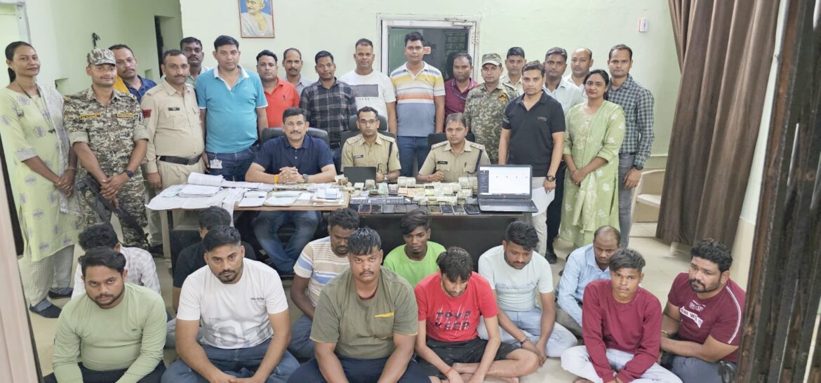 पुलिस अधीक्षक दिव्यांग पटेल द्वारा सट्टा पट्टी लिखने वालों पर कार्रवाई के लिए सीएसपी आकाश शुक्ला एवं साइबर सेल डीएसपी अभिनव उपाध्याय के नेतृत्व में टीआई मोहन भारद्वाज, टीआई प्रशांत राव, टीआई सुखनंदन पटेल, साइबर सेल, कोतवाली, जूटमिल और चक्रधरनगर स्टाफ की अलग-अलग टीमें बनाई गई । इन टीमों ने द्वारा आज शाम शहर के कई स्थानों पर एक साथ सट्टा रेड कार्रवाई किया गया जिसमें 12 व्यक्तियों को पुलिस ने रंगे हाथ कागज, मोबाइल, लेपटाप, टैबलेट पर सट्टा-पट्टी नोट करते पकड़ा है ।